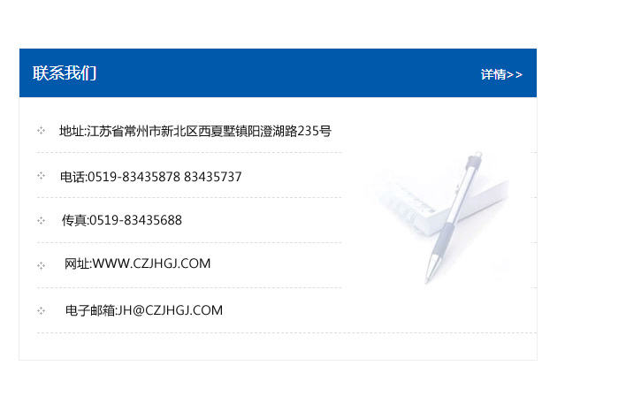 地址:常州市新北區友邦商務大廈1幢16、17層  電話:0519-85101652  傳真:0519-85112595  郵編:213022  網址:www.www_cdhtzjs_com.yinhaihouse.com  郵箱:xiajifengaa@163.com